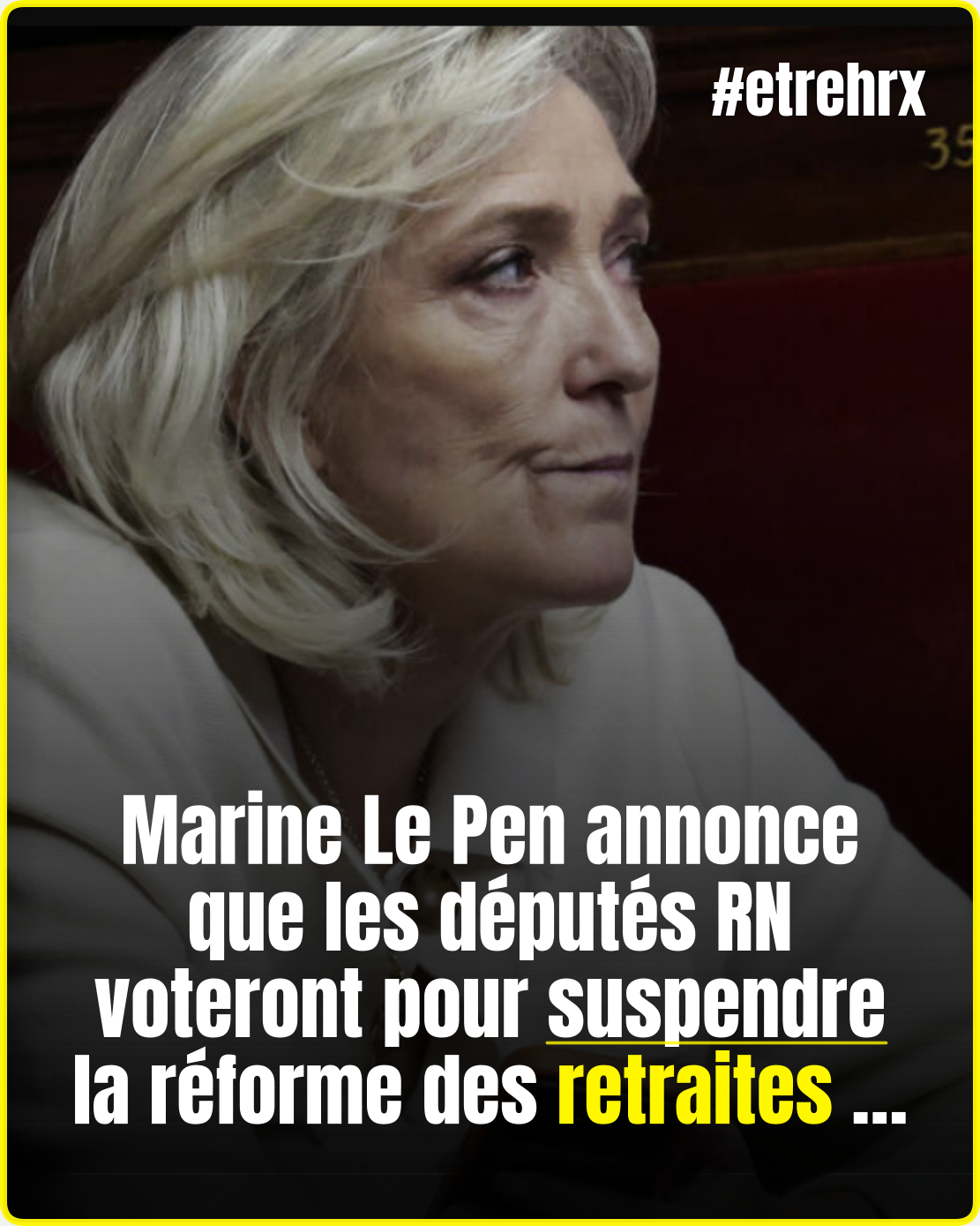 Marine Le Pen annonce que les députés RN voteront pour suspendre la réforme des retraites….. ꪜ̲o̲i̲r̲ Pl̲u̲s̲👇