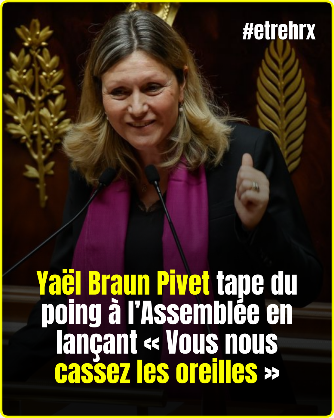 Yaël Braun Pivet tape du poing à l’Assemblée en lançant « Vous nous cassez les oreilles ».. ꪜ̲o̲i̲r̲ Pl̲u̲s̲👇